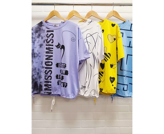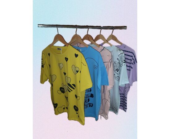 Яркая и уютная трикотажная футболка, женская нарядная - это то, что нужно летом! Футболка женская нарядная с принтом, имеет классический округлый вырез и короткий рукав. Удлиненная футболка оверсайз с рисунком станет любимой и незаменимой вещью вашего гардероба! Такой улучшенный дышащий трикотаж очень практичен, не мнется, не деформируется, при этом обладает большей воздухопроницаемостью. Футболка очень мягкая и комфортная - идеальная вещь на весну и лето!