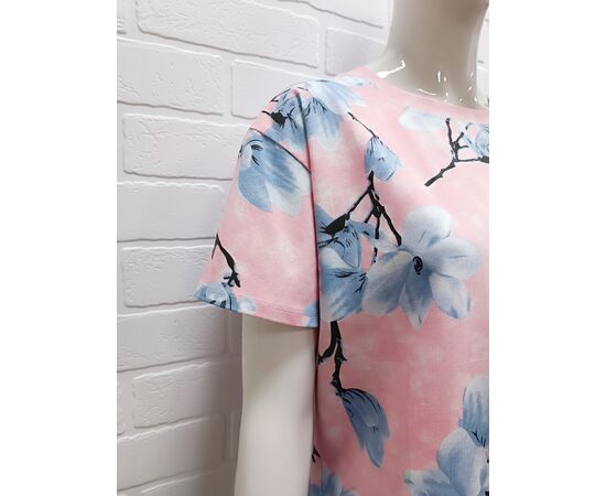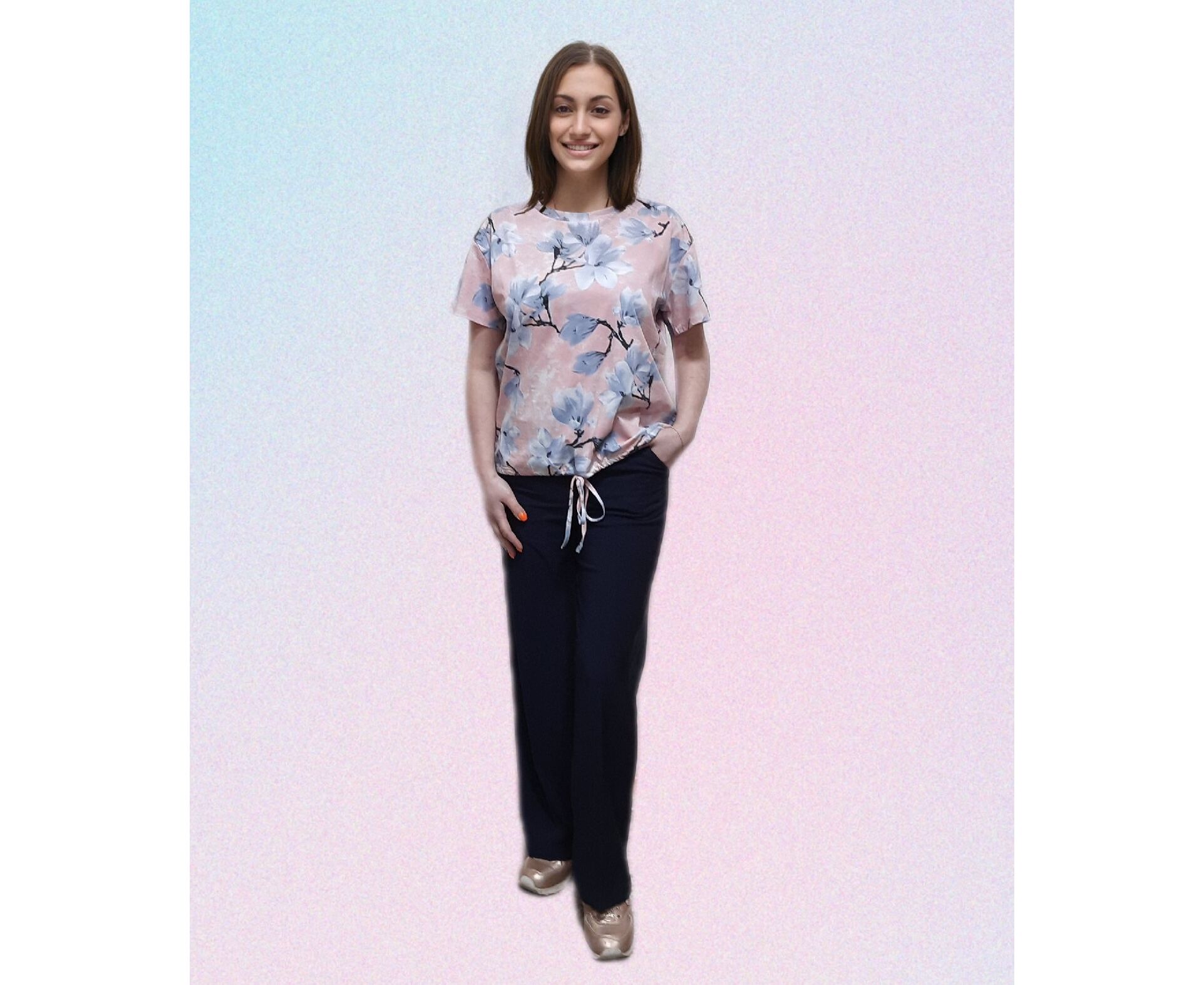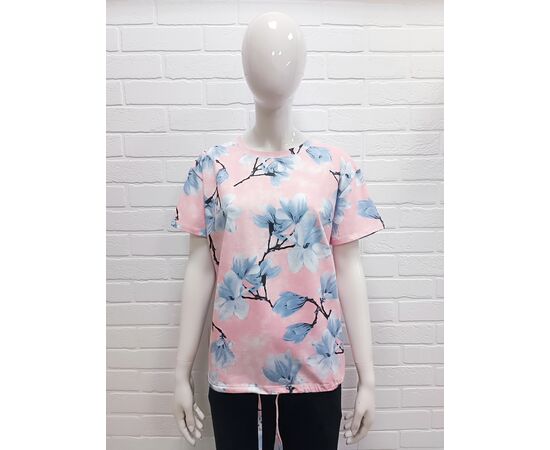 Женская футболка отлично смотрится с брюками, юбкой и джинсами. Незаменимая вещь в летнем гардеробе. Футболка отшита из качественного хлопка высокого качества , приятная, нежная к телу, ткань не тянется. На футболке изображён красивый принт.