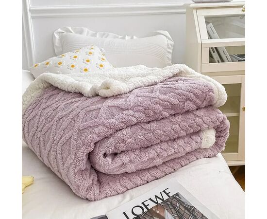 Состав: велсофт. Двухстороннее изделие премиум - качества выполнено из гипоаллергенного материала, украшено вязаным декоративным узором и мягкой меховой окантовкой. Его основа - флисовая подкладка с толстым ворсом. Модная пушистая накидка прямоугольной формы украсит двуспальную кровать в семейной спальне, большой диван в гостиной или зале. Ее можно накинуть на кресло и любой другой предмет мебели, использовать в загородном доме, квартире или дачном домике. В него приятно укутываться во время просмотра любимых телепередач по телевизору, расположившись перед камином или в кресле - качалке. Утепленный плед - оригинальный и интересный подарок. Расцветки в ассортименте.