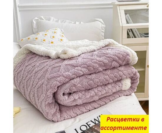 Состав: велсофт. Двухстороннее изделие премиум - качества выполнено из гипоаллергенного материала, украшено вязаным декоративным узором и мягкой меховой окантовкой. Его основа - флисовая подкладка с толстым ворсом. Модная пушистая накидка прямоугольной формы украсит двуспальную кровать в семейной спальне, большой диван в гостиной или зале. Ее можно накинуть на кресло и любой другой предмет мебели, использовать в загородном доме, квартире или дачном домике. В него приятно укутываться во время просмотра любимых телепередач по телевизору, расположившись перед камином или в кресле - качалке. Утепленный плед - оригинальный и интересный подарок. Расцветки в ассортименте.