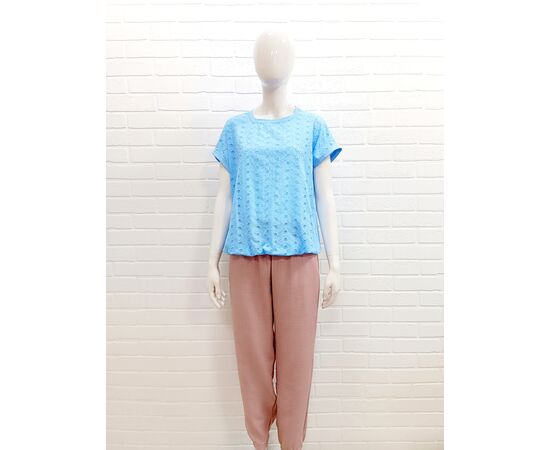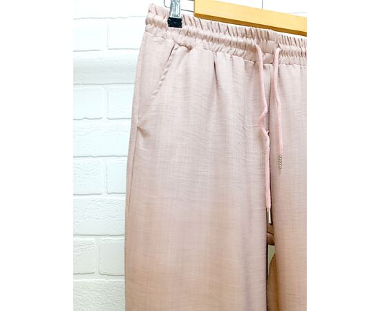 Брюки выполнены из легкого материала. Этот материал создает приятное ощущение на коже и обеспечивает комфорт в жаркие дни. Брюки имеют свободный крой и низ на манжете. Они смотрятся элегантно и привлекательно. Вы можете сочетать их с различными элементами гардероба.