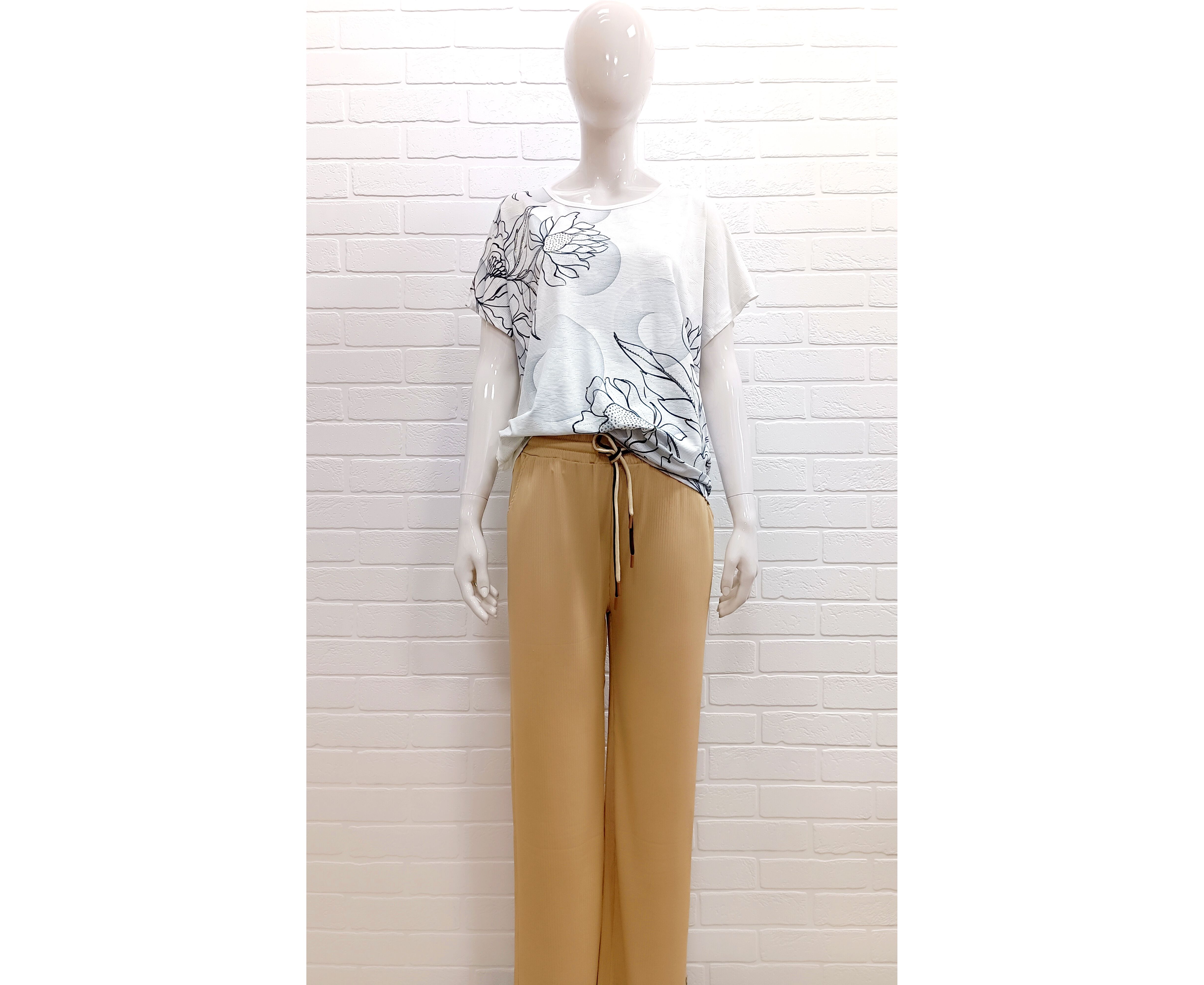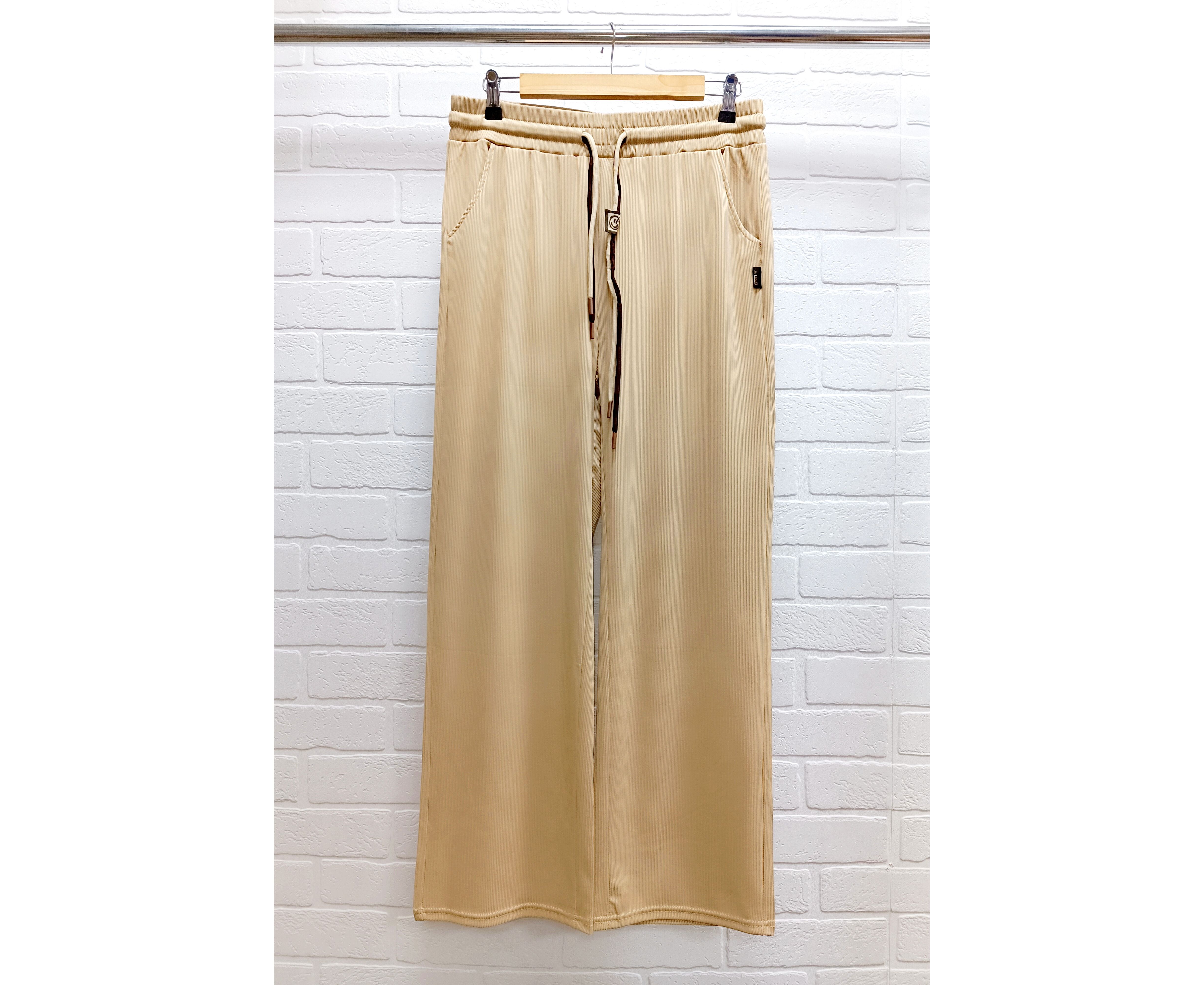 Широкие палаццо – идеальный выбор для модных и уверенных в себе женщин. Брюки выполнены из легкого материала – лапши в рубчик. Этот материал создает приятное ощущение на коже и обеспечивает комфорт в жаркие дни. Брюки имеют свободный крой и низ в стиле клеш, что позволяет создать визуальный эффект длинных ног. Они смотрятся элегантно и привлекательно. Вы можете сочетать их с различными элементами гардероба.