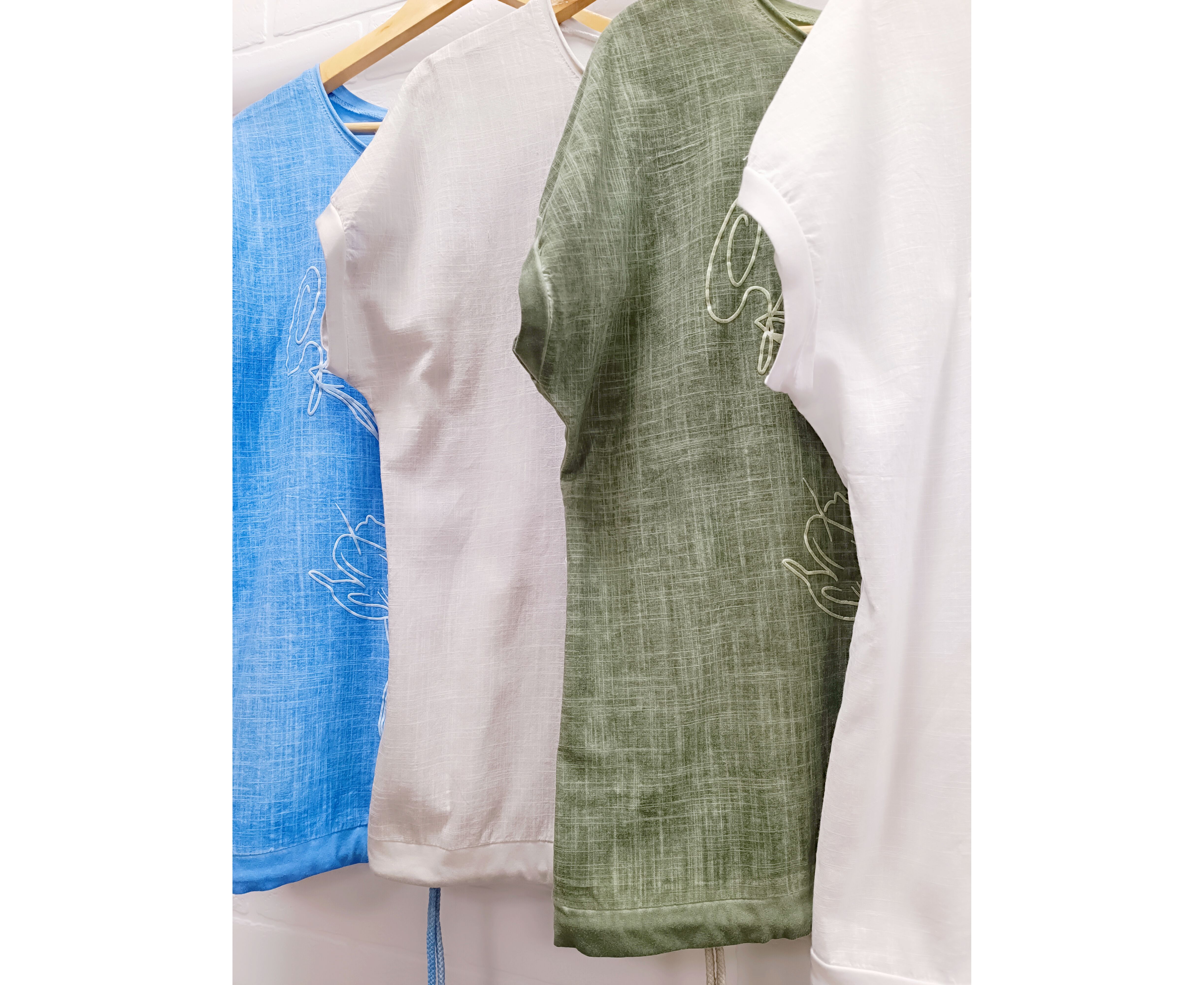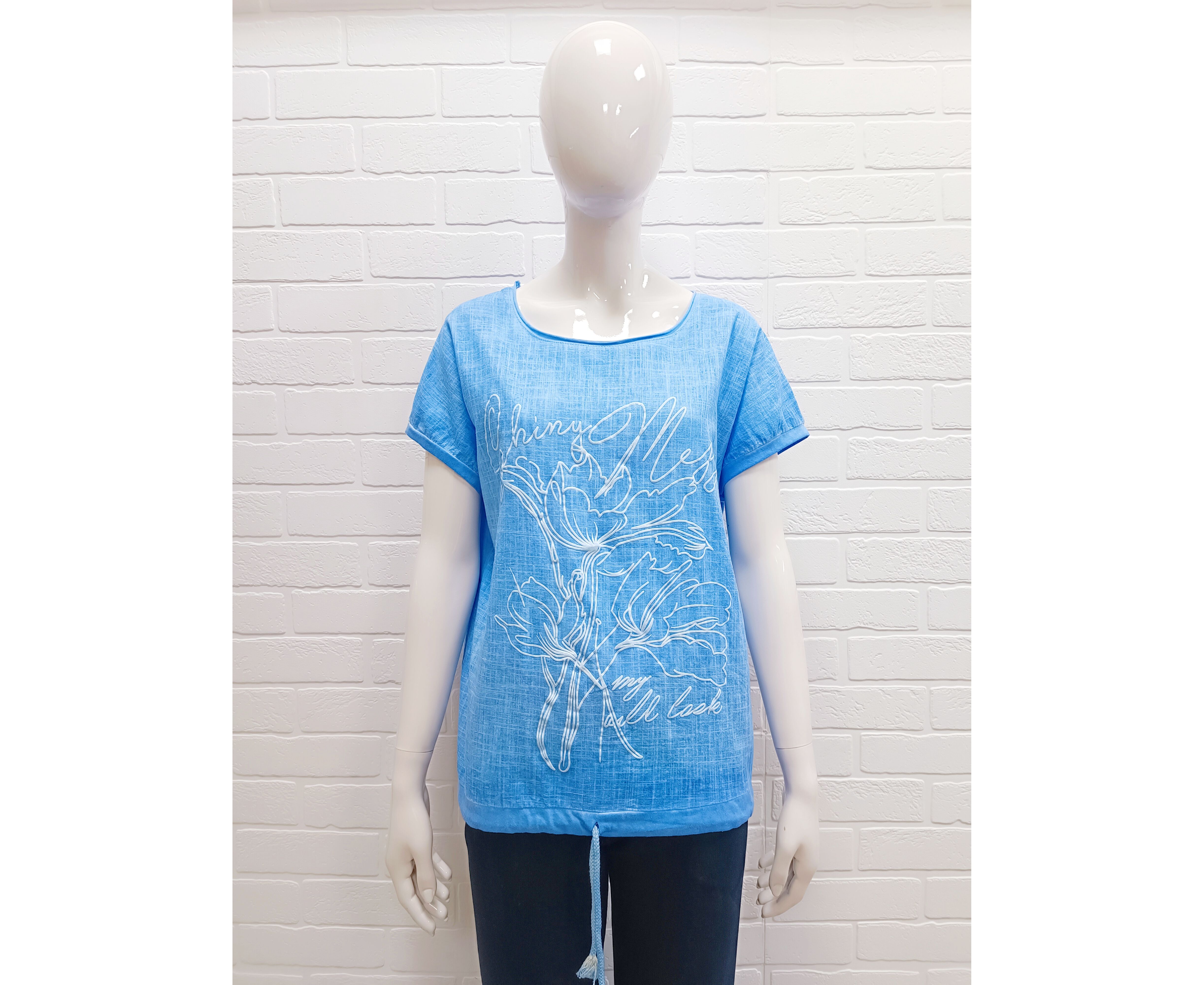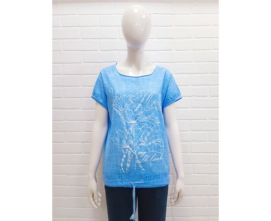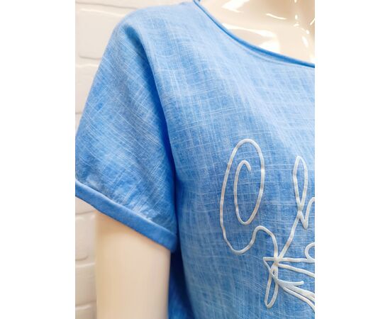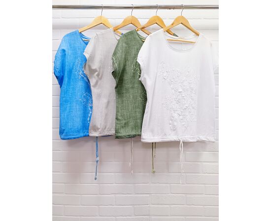 Летняя футболка с коротким рукавом — идеальный выбор для теплых дней! Изготовлена из натуральной ткани, она позволяет коже дышать и дарит максимальный комфорт. Эффект варенки придает ей оригинальности, а оверсайз крой свободно облегает фигуру, не сковывая движения. Уникальный принт с цветами добавляет свежести, а шнурок по талии позволяет регулировать силуэт, подчеркивая ваши достоинства.