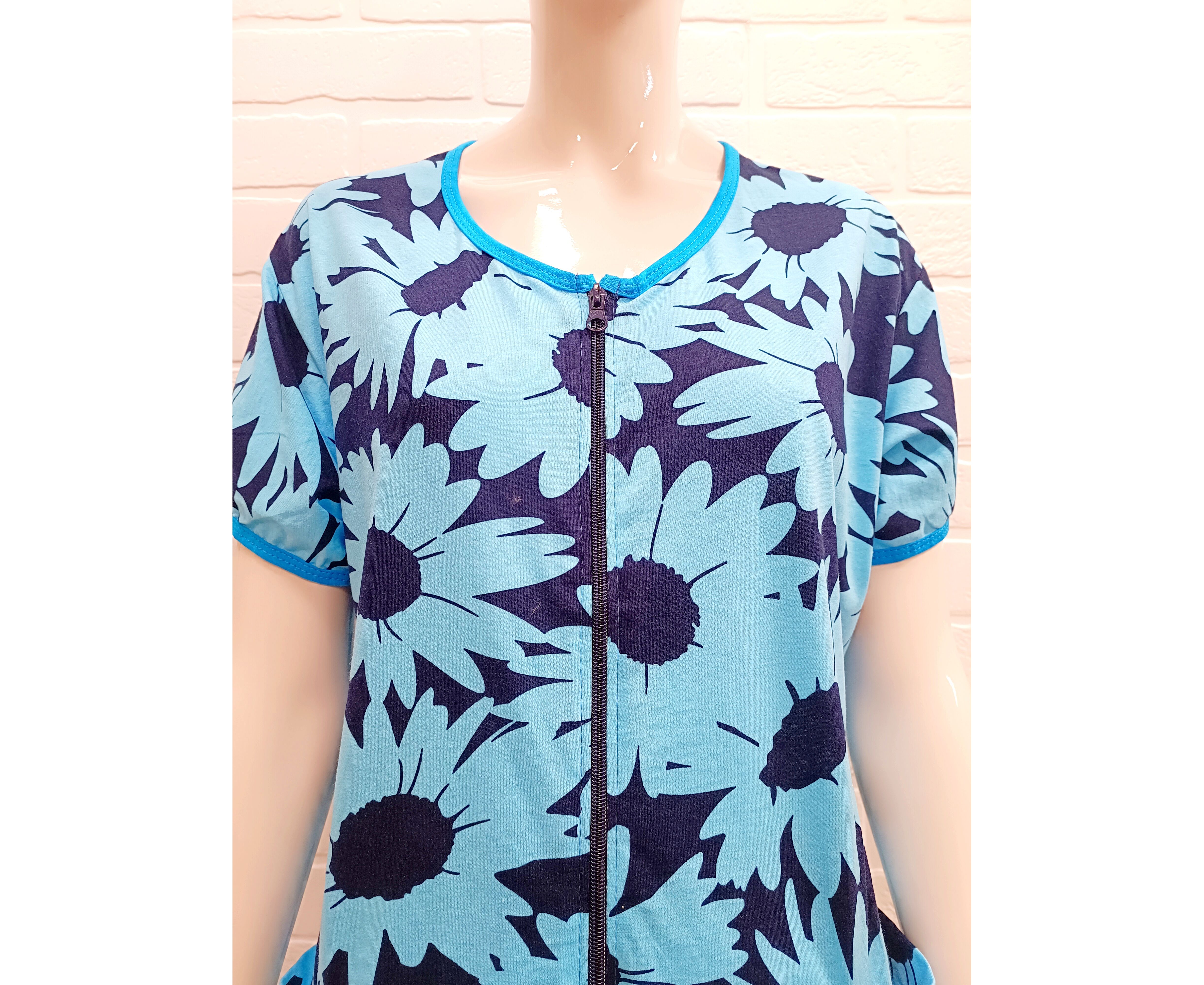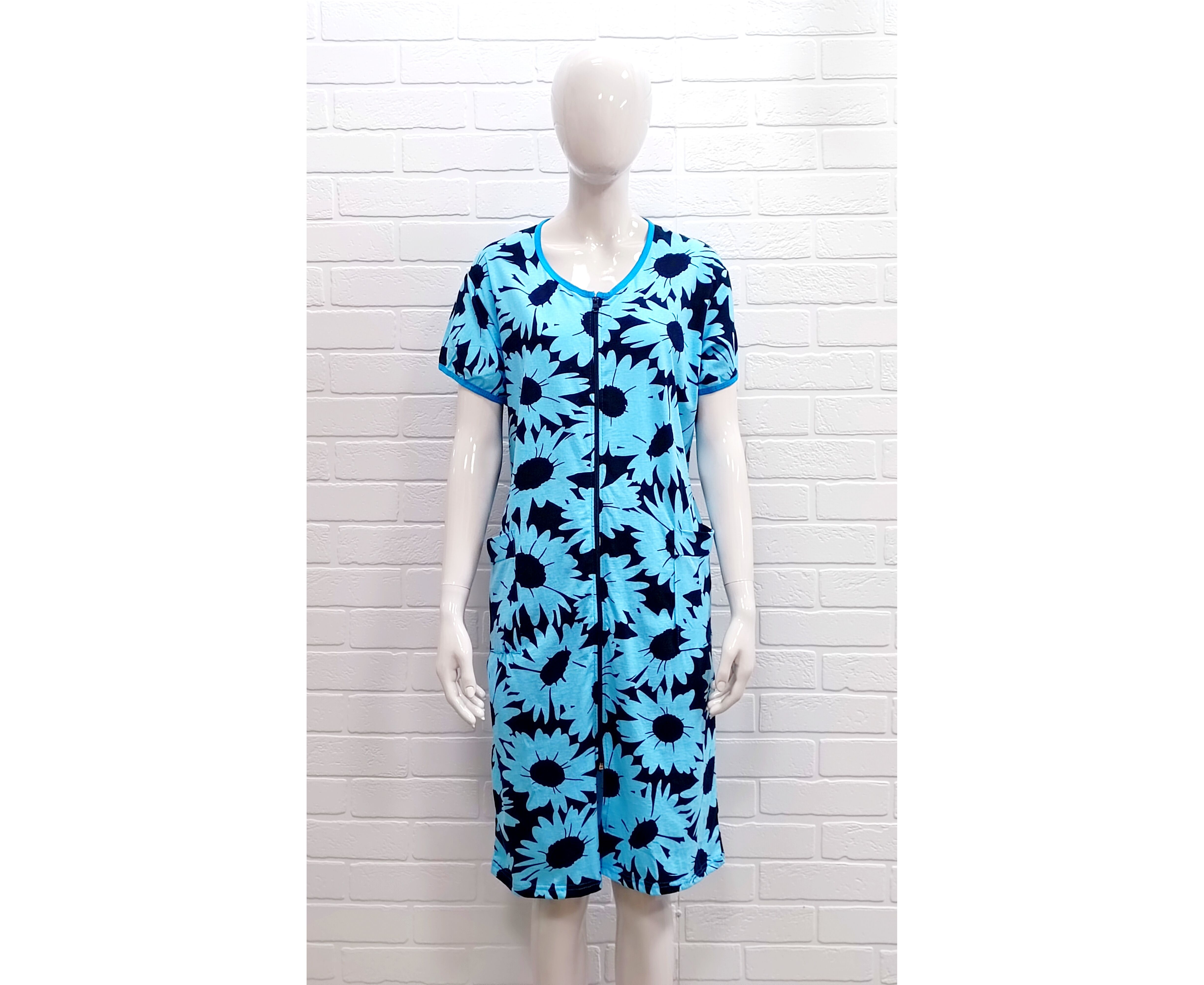 Халат на молнии, короткий рукав. Домашний халат, состоит из 100% хлопка, который позволяет обеспечивать естественный теплообмен и не сковывать ваши движения.