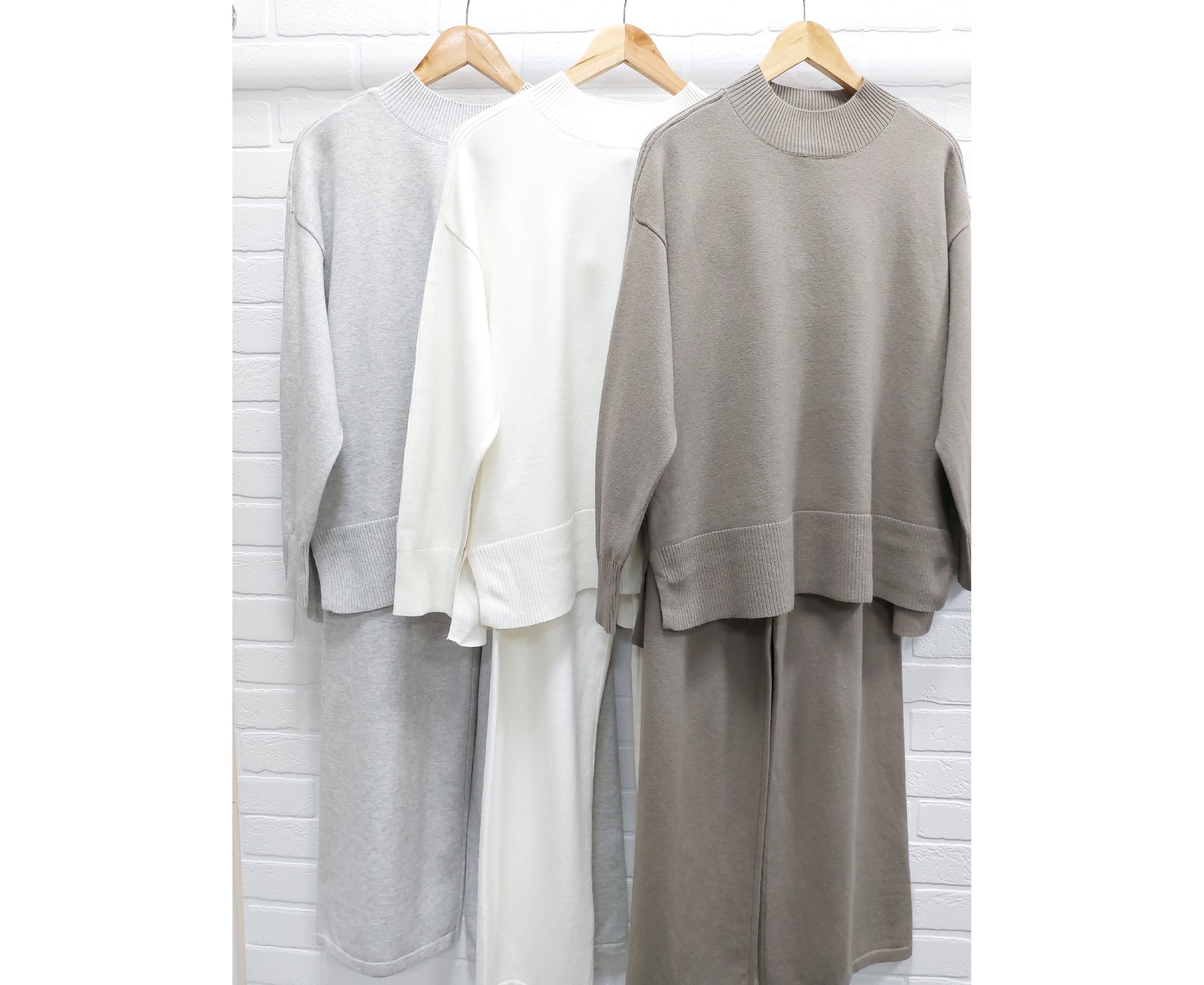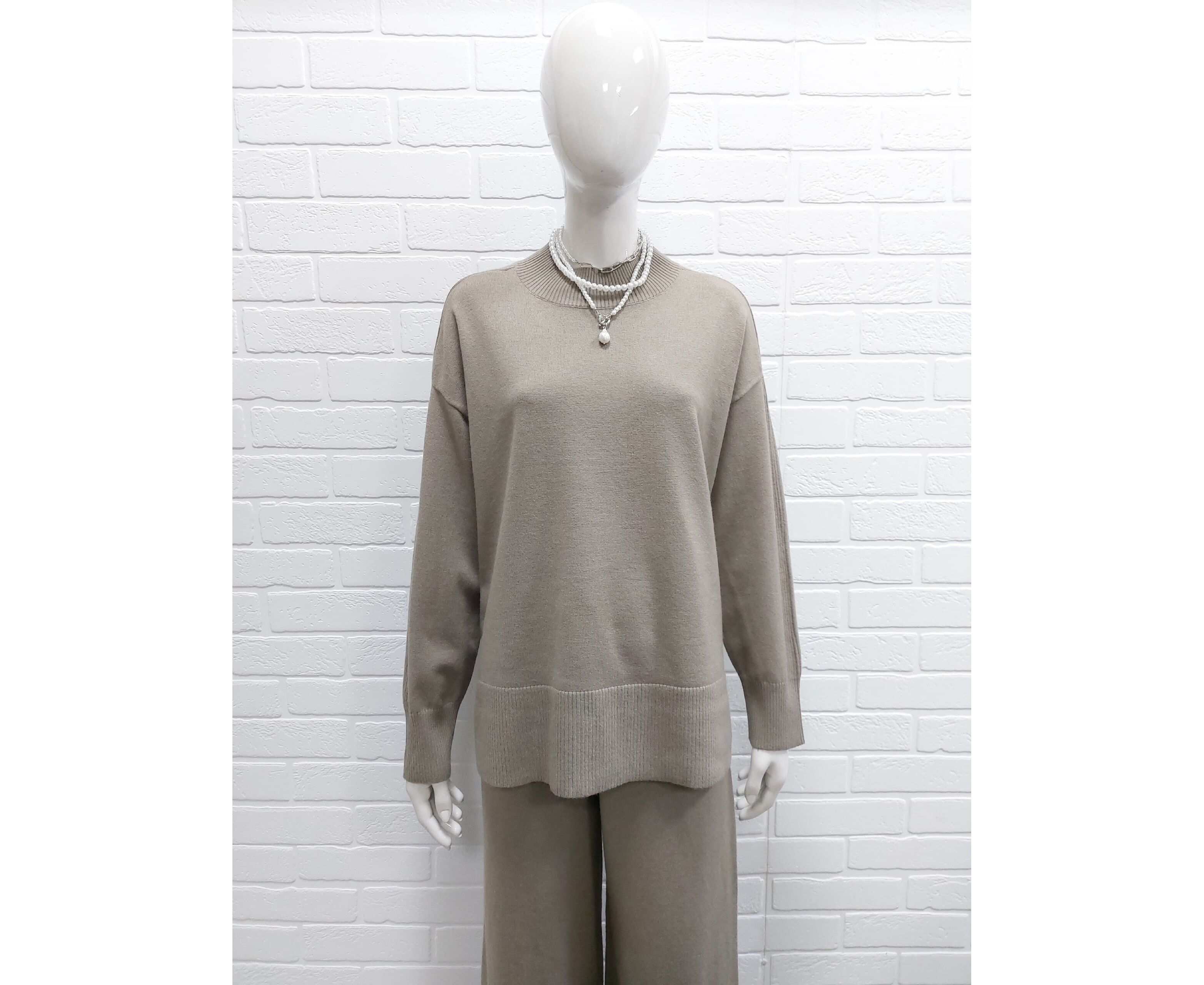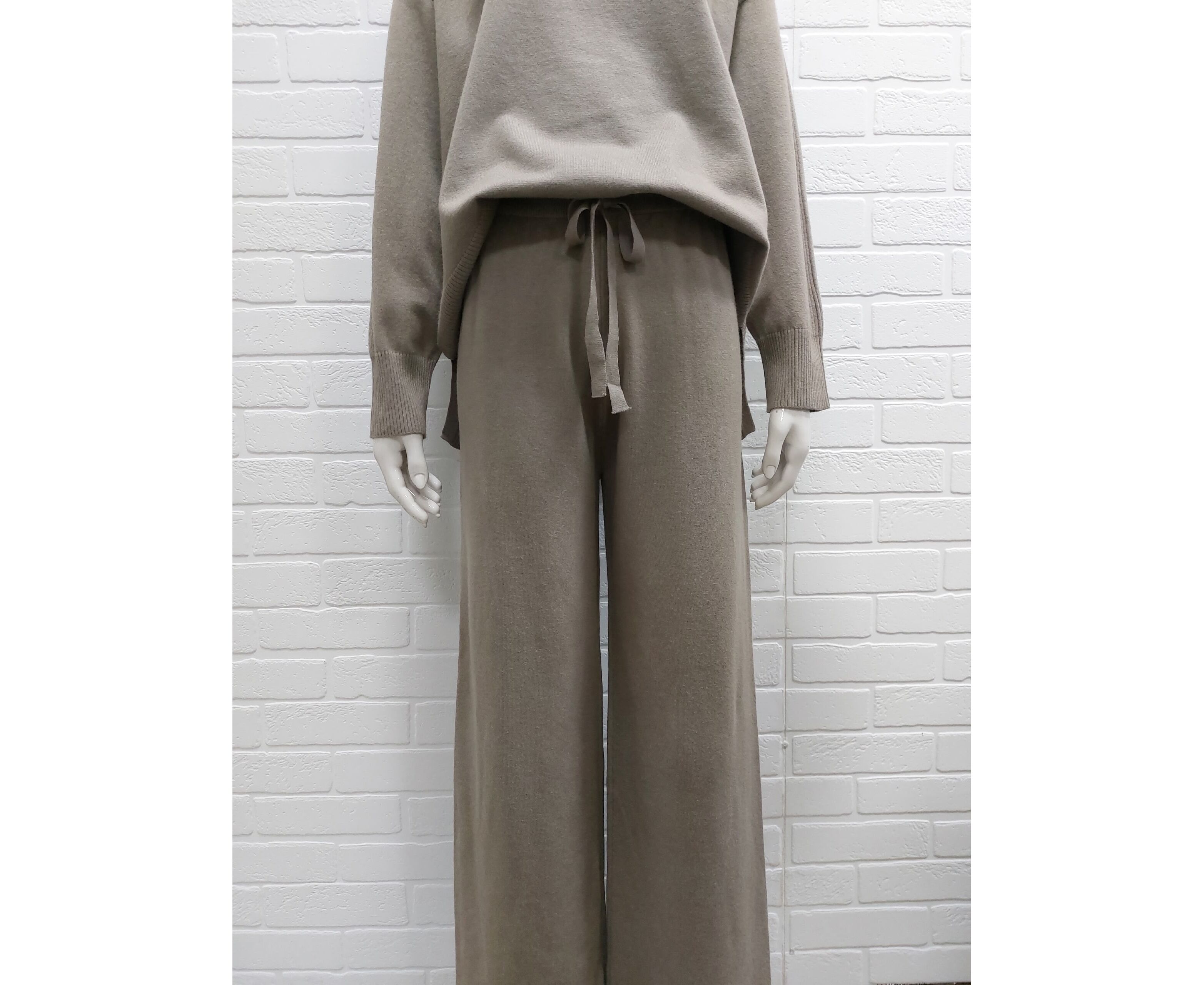 Теплый костюм с брюками, сшитый из мягкого кашемирового трикотажа добавит вам изысканность и утонченность. Благодаря своей многосторонности и утепленной конструкции, он станет вашим фаворитом в холодный период. В набор входят мягкий джемпер и прямые брюки с поясом на резинке и декоративным шнурком. Такой костюм станет практичной основой для повседневного гардероба.