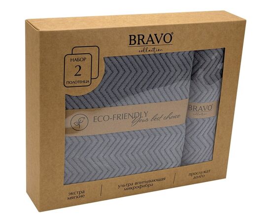 Набор из двух полотенец 35×75 см и 70×140 см, произведённых из микрофибры, упакован в стильную крафтовую коробку.