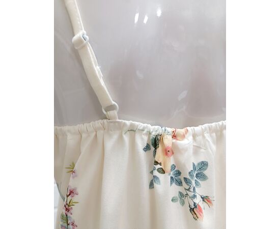 Милая женственная пижама с нежным рисунком. Топ на регулируемых лямках. На спинке по верхнему вырезу резинка. Шорты с кокетливой рюшей по нижнему краю.