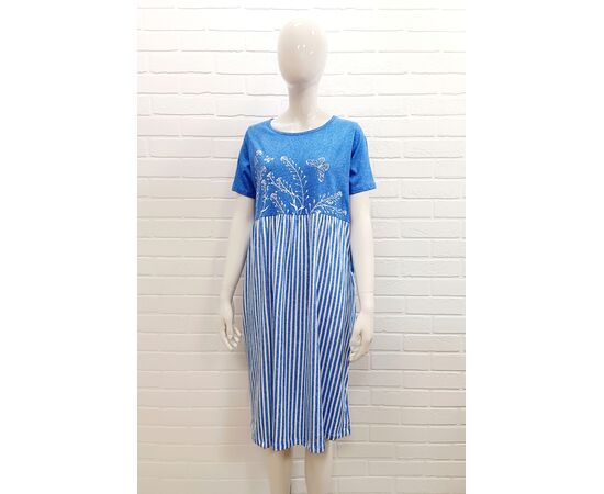 Свободное и легкое платье, оно идеально для повседневного ношения в теплые дни весны и лета. Платье с коротким рукавом, что делает его универсальным и стильным, подходит для любого случая.