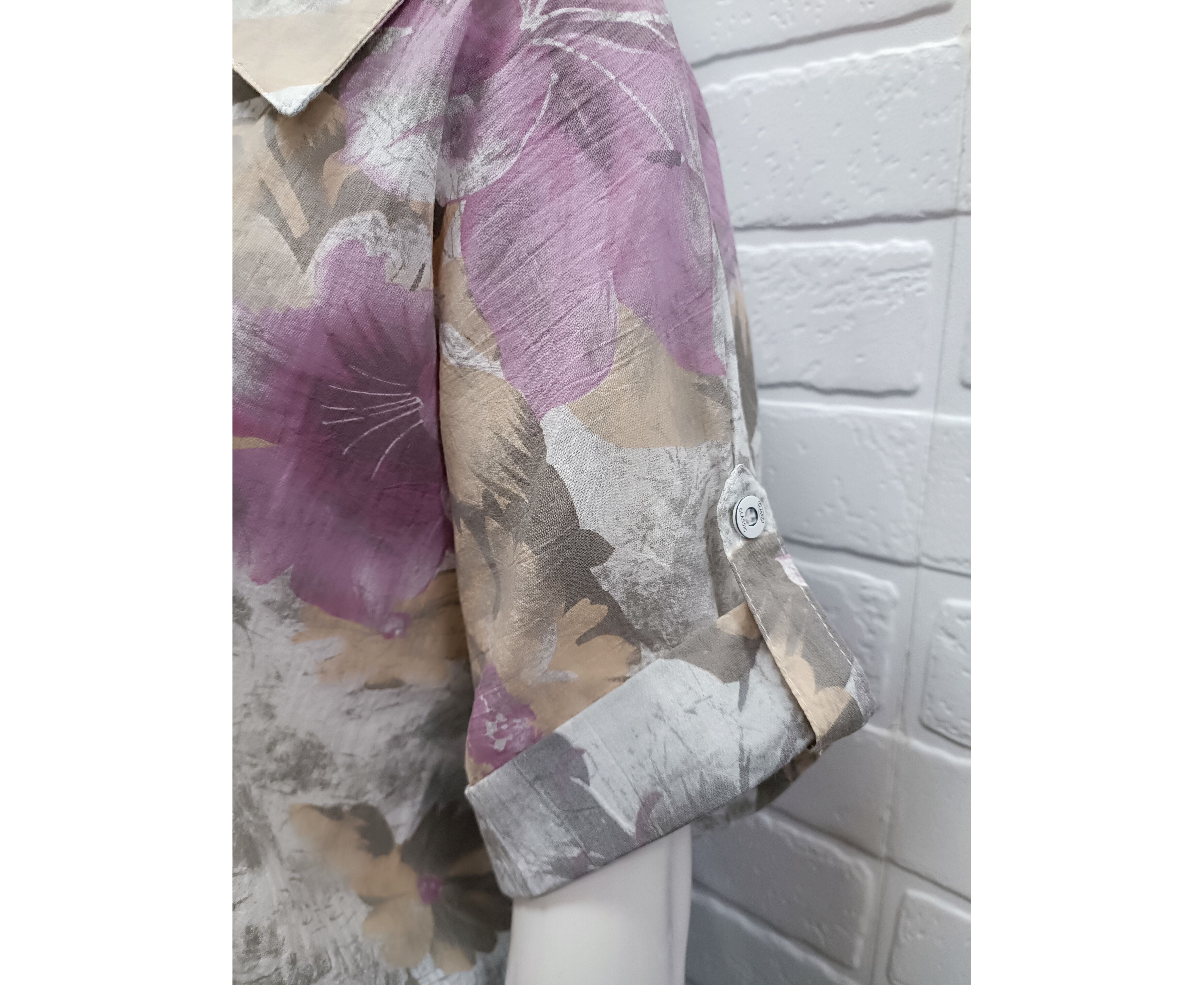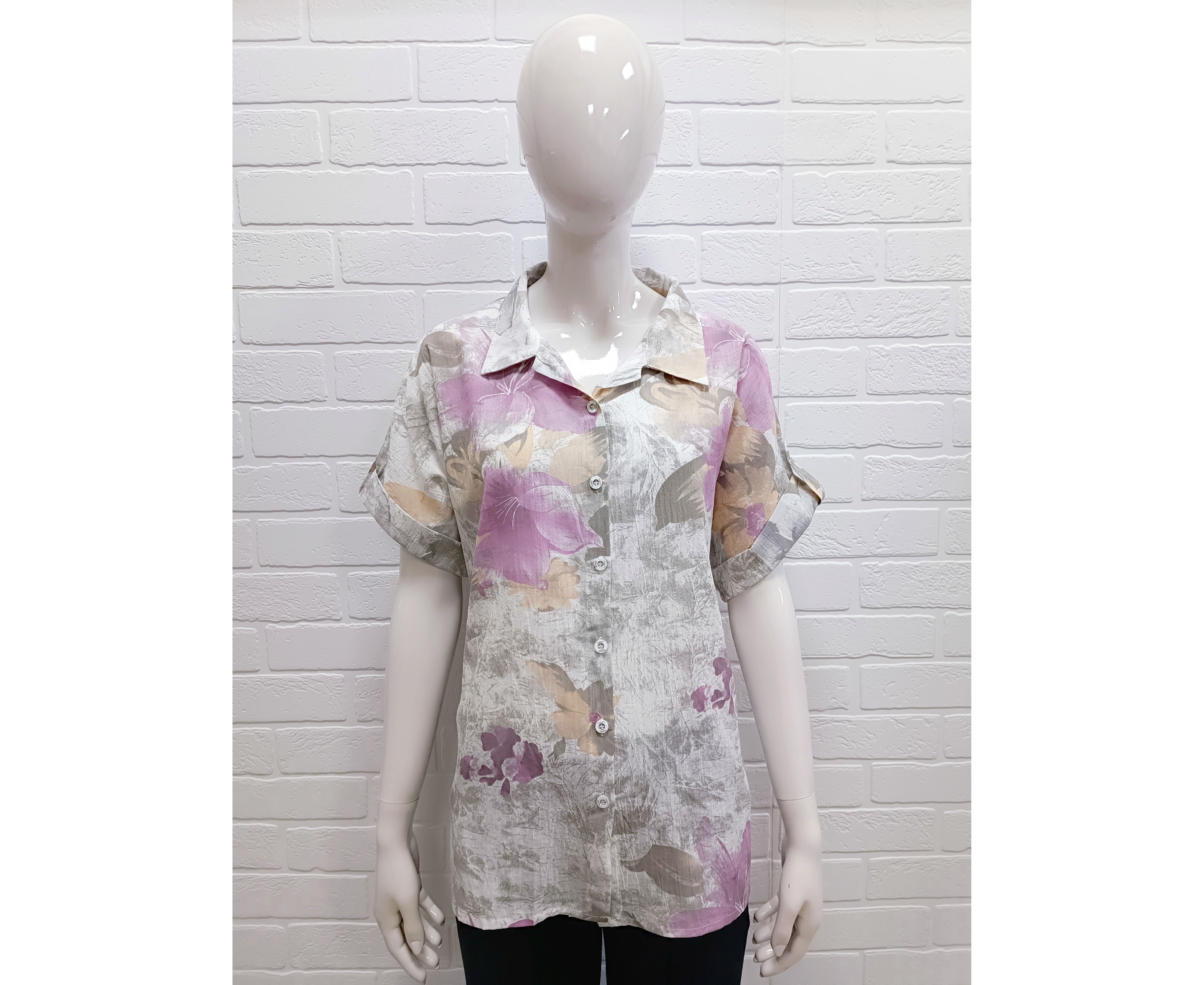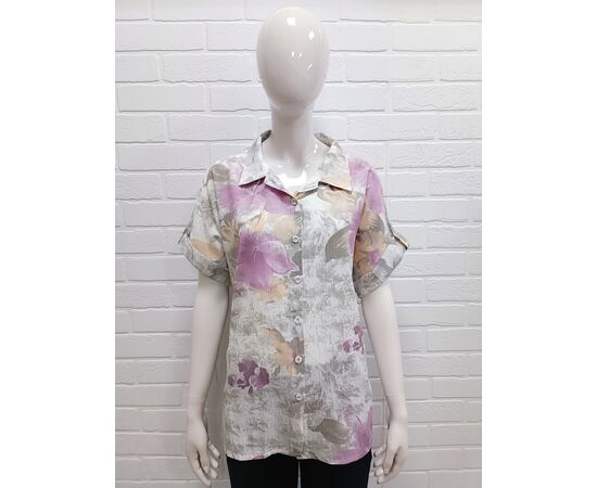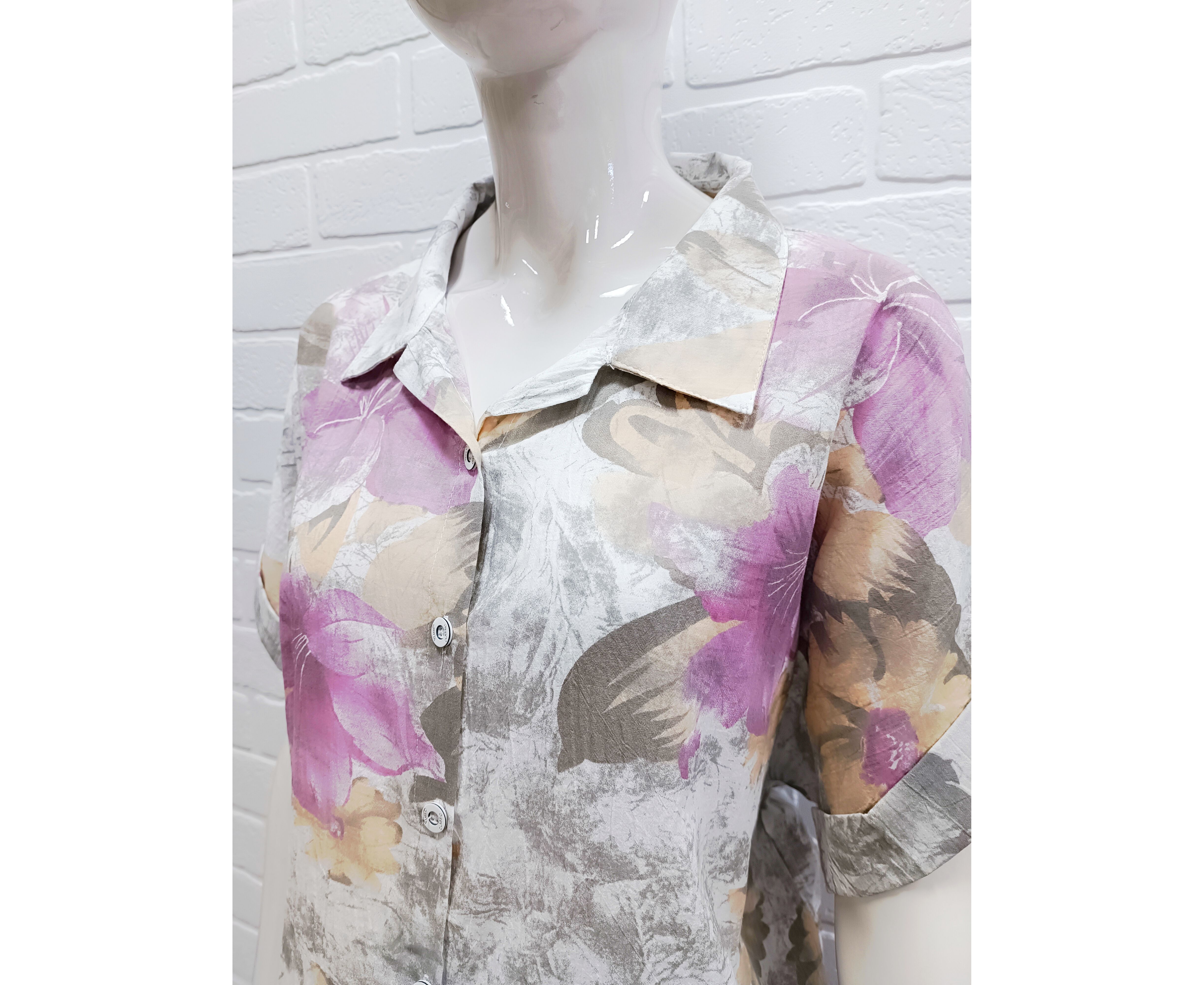 Блузка летняя хлопковая - это идеальный выбор для жарких дней. Сшита из 100% хлопка, она невероятно легкая и приятная к телу. Модель с короткими рукавами и ярким цветочным рисунком прекрасно подойдет как для повседневной носки, так и для отдыха на пляже. Благодаря свободному крою блузка подходит для больших размеров, а пуговичная застежка позволяет легко надевать и снимать ее.
