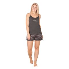 Легкая пижама из 100% хлопка. Майка на бретелях придает образу легкость и элегантность, а кружевные детали добавляют нотку романтики, делая модель особенно привлекательной. Шорты с эластичной резинкой на талии подчеркивает линию бедер, не сковывая при этом движений.