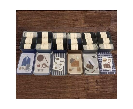 Носки мужские в подарочной коробке - это идеальный выбор как подарок для создания праздничной атмосферы и приятного сюрприза для ваших близких. Набор носков в металлической жестяной коробке Turkan изготовлен из 88% мягкого хлопка, что позволяет ножке «дышать».Ароматизированные, антибактериальные, а так же гипоаллергенные носочки пропитаны специальным дезинфицирующим средством, такой состав уничтожает бактерии и грибок, а так же такой антибактериальный состав препятствует неприятному запаху.
