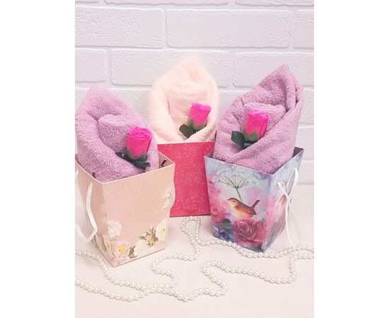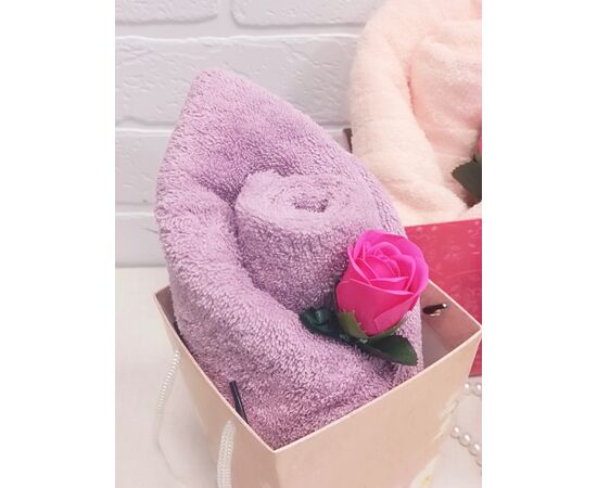 Состав: хлопок 100%. В набор входит: полотенце 50*80 - 1шт, полотенце 30*60 - 1шт, цветок из мыла - 1шт. Набор подарочный в коробке прекрасное решение для подарка маме, бабушке, свекрови, коллеге, учителю, сестре или любимой жене.