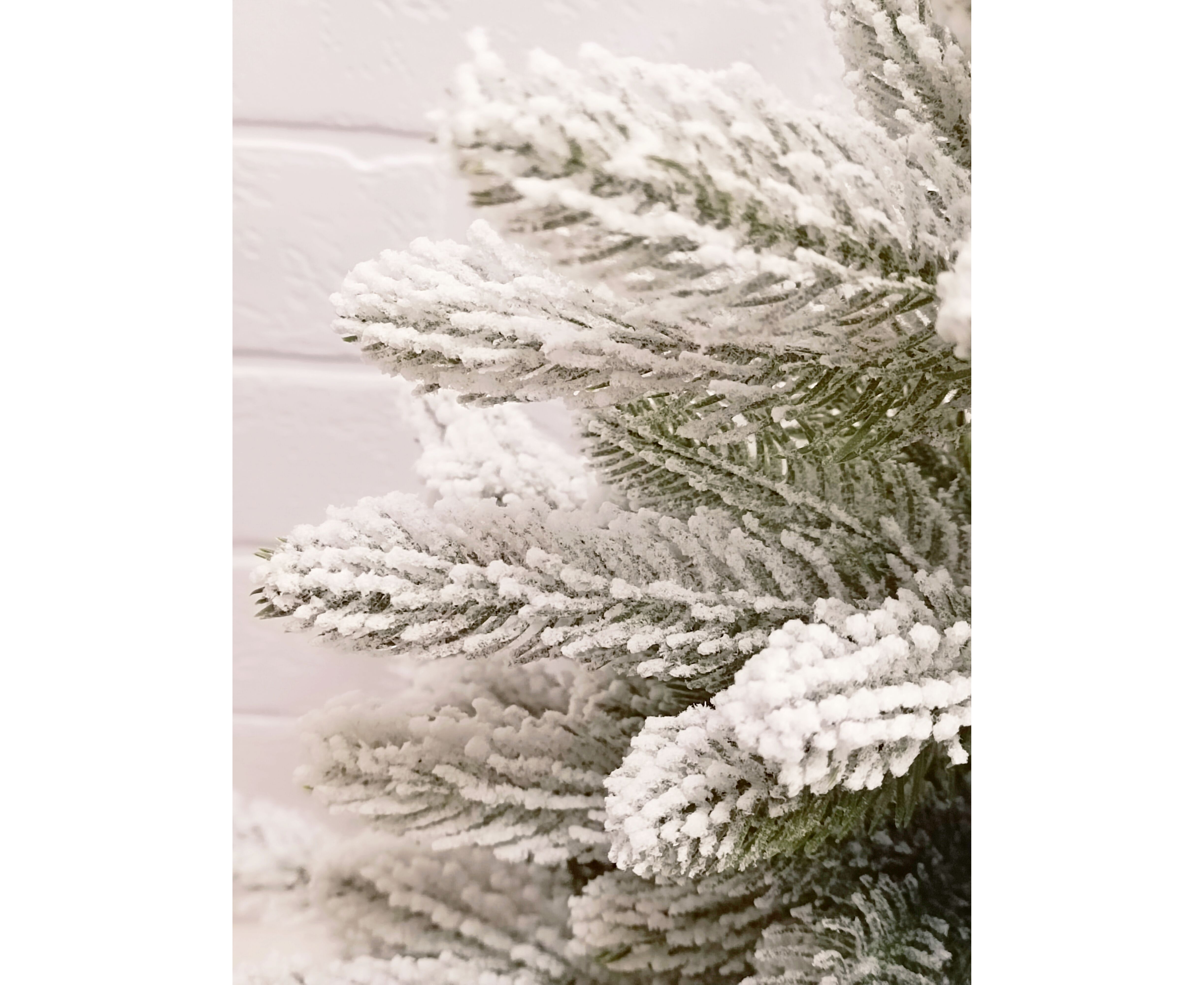 Мягкое снежное напыление создаёт эффект свежего инея и не осыпается, что делает изделие безопасным для детей и домашних животных. Устойчивая пластиковая кашпо-подставка позволяет легко разместить ёлку на столе, подоконнике или тумбе. Идеально подходит для создания новогоднего декора в квартире, офисе или в качестве подарка или украшения для дома.