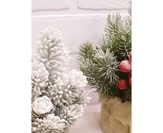 Мини-ёлочка с мягкой подсветкой создаёт уютную атмосферу и становится аккуратным акцентом новогоднего оформления. Тёплый свет освещает заснеженные веточки и нежно подчёркивает их фактуру, поэтому композиция выглядит нарядно даже в небольшом помещении. Декор гармонично смотрится на столе, подоконнике, полке или рабочем месте. Он помогает быстро придать помещению праздничное настроение и визуально оживляет интерьер. Композиция не требует ухода и всегда сохраняет аккуратный вид. Подсветка работает мягко и даёт спокойное свечение, которое добавляет комнате уют в вечернее время.
