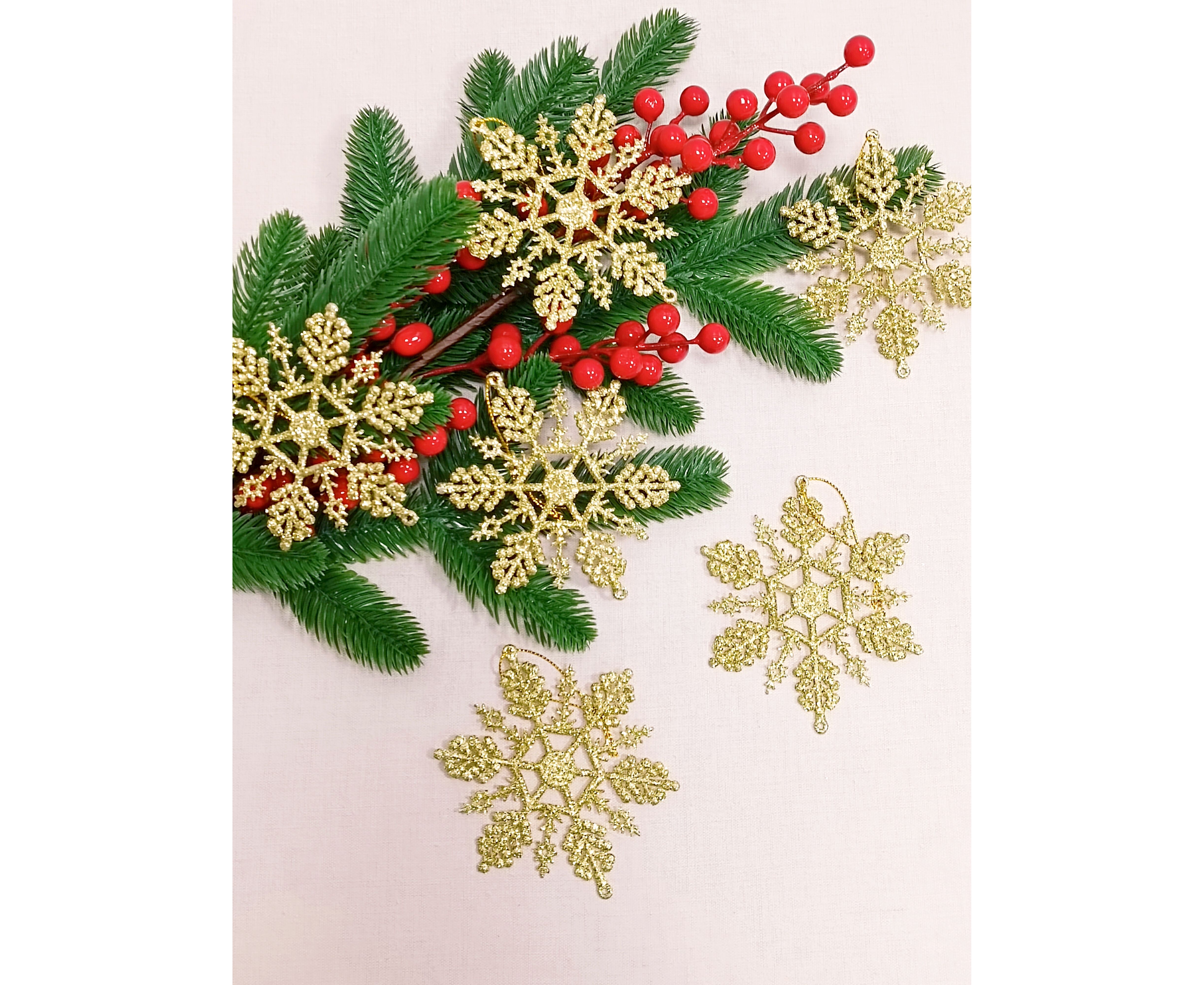 Набор новогодних елочных снежинок- идеальное украшение для вашей елки! Комплект состоит из 6 шт. снежинок ажурной резной формы, покрытые блестками. Комплект игрушек отлично подойдет в качестве подарка или сюрприза.