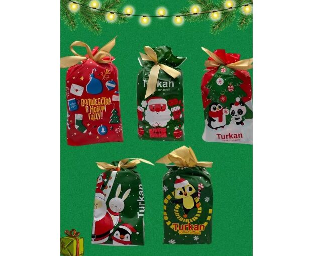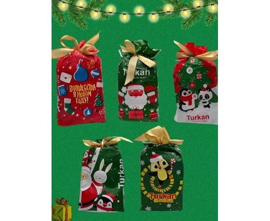 Набор из 3 носков в мешочке ( теплые, комфортные, длинные, приятные к телу, не давят) с праздничным принтом, .носки идеально подойдут в качестве подарка.
