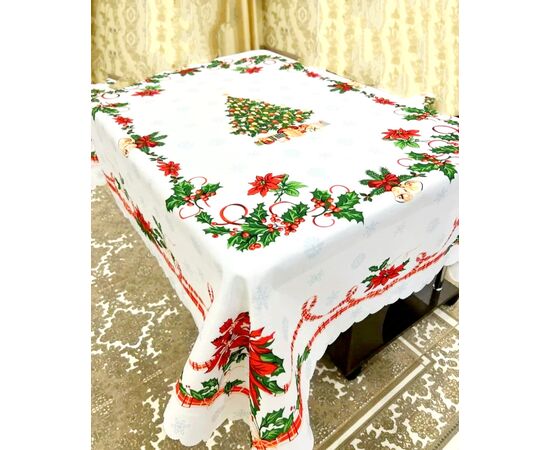 Скатерть новогодняя прямоугольная на стол с традиционным принтом - главное украшение праздника и великолепный подарок семье или друзьям. Каждая хозяйка дома старается продумать все - оригинальную еду, декор, а так же сервировку праздничного новогоднего стола. Неизменным атрибутом Рождественского и Новогоднего ужина, конечно же, является новогодний кухонный текстиль - скатерти и салфетки.