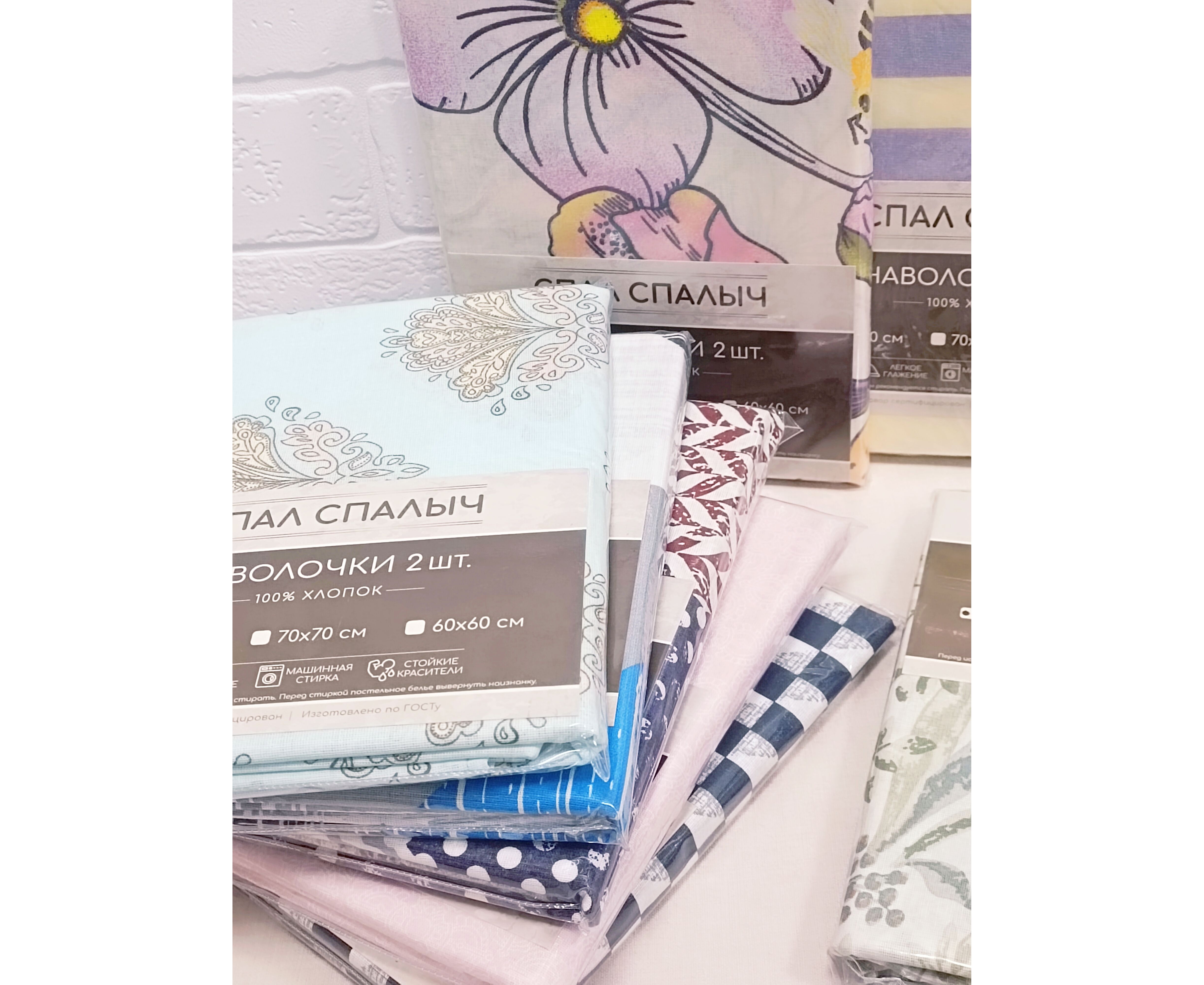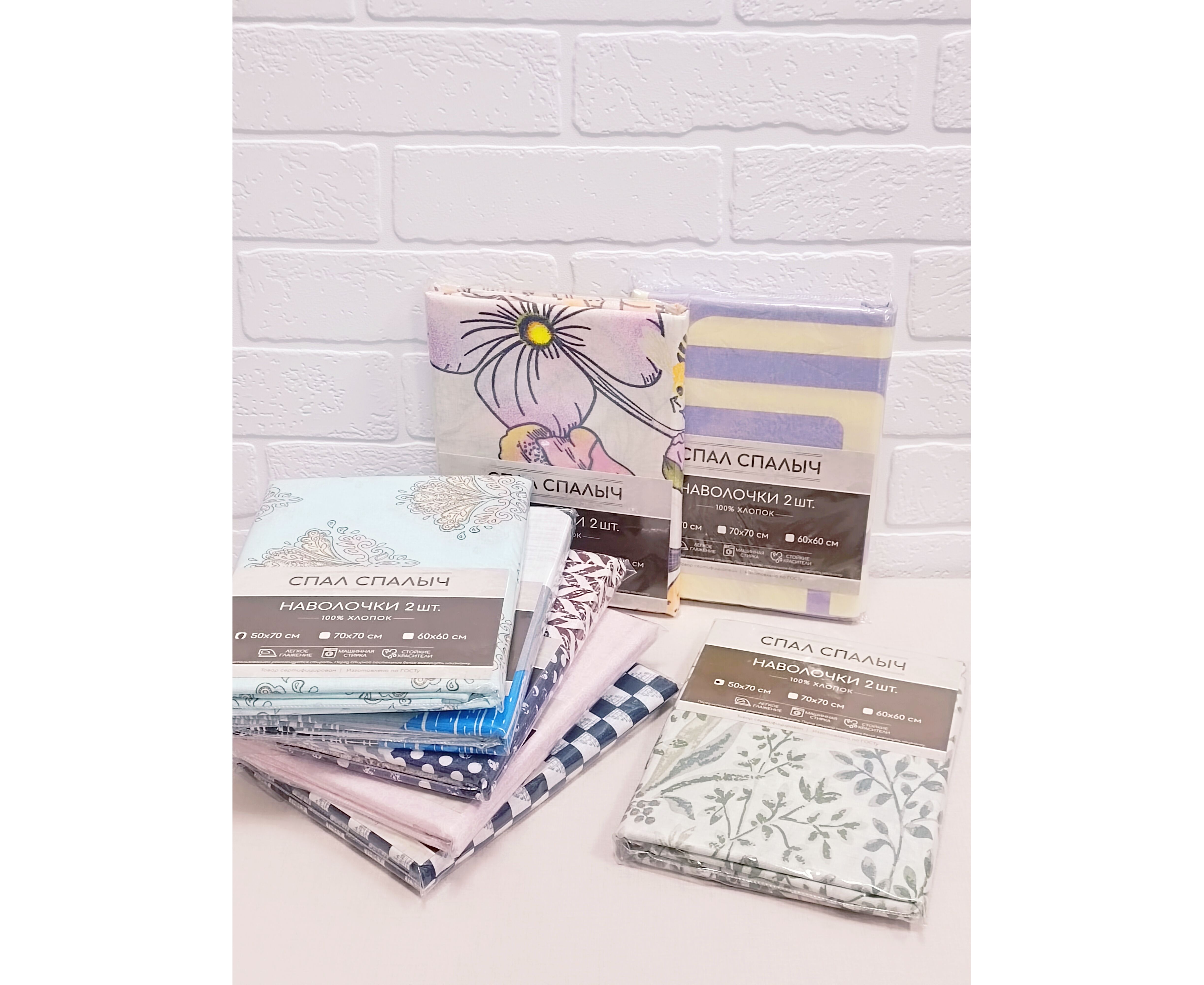 Состав: хлопок 100%. Расцветки в ассортименте. В набор входит две наволочки 50*70.