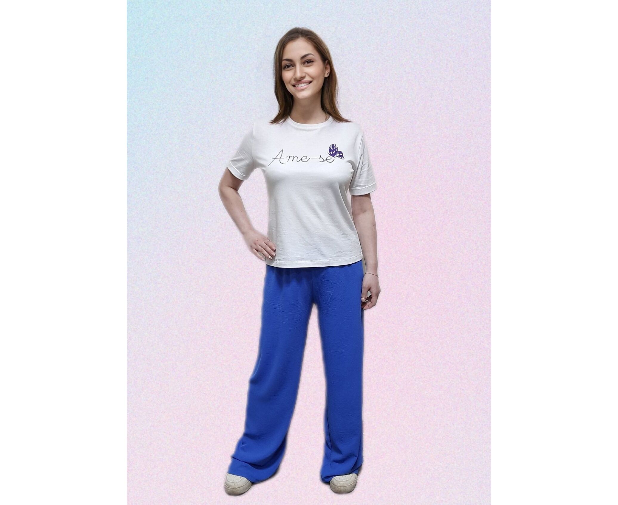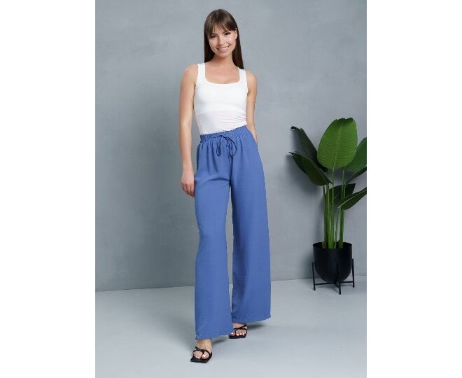 Брюки палаццо женские на резинке с классической для них высокой посадкой сшиты из смесовой жатой ткани. Хлопок в составе обеспечит идеальный воздухообмен, вискоза создаст струящийся силуэт и подарит ощущение прохлады, а небольшое количество эластана позволит сделать модель приталенной и слегка облегающей бедра. Очень удобная, красивая и практичная одежда. Тонкие, мягкие, расклешенные юбка брюки женские с такой фактурой просто созданы для прогулок по берегу моря или пляжных вечеринок. Широкие, прямого кроя клеши не выходят из моды уже много лет. Секрет их популярности – универсальность. Расцветки в ассортименте.