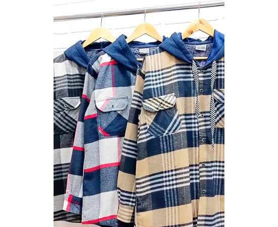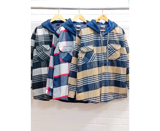 Рубашка Клетка мех №345 с капюшоном (т) р.50-58 Л