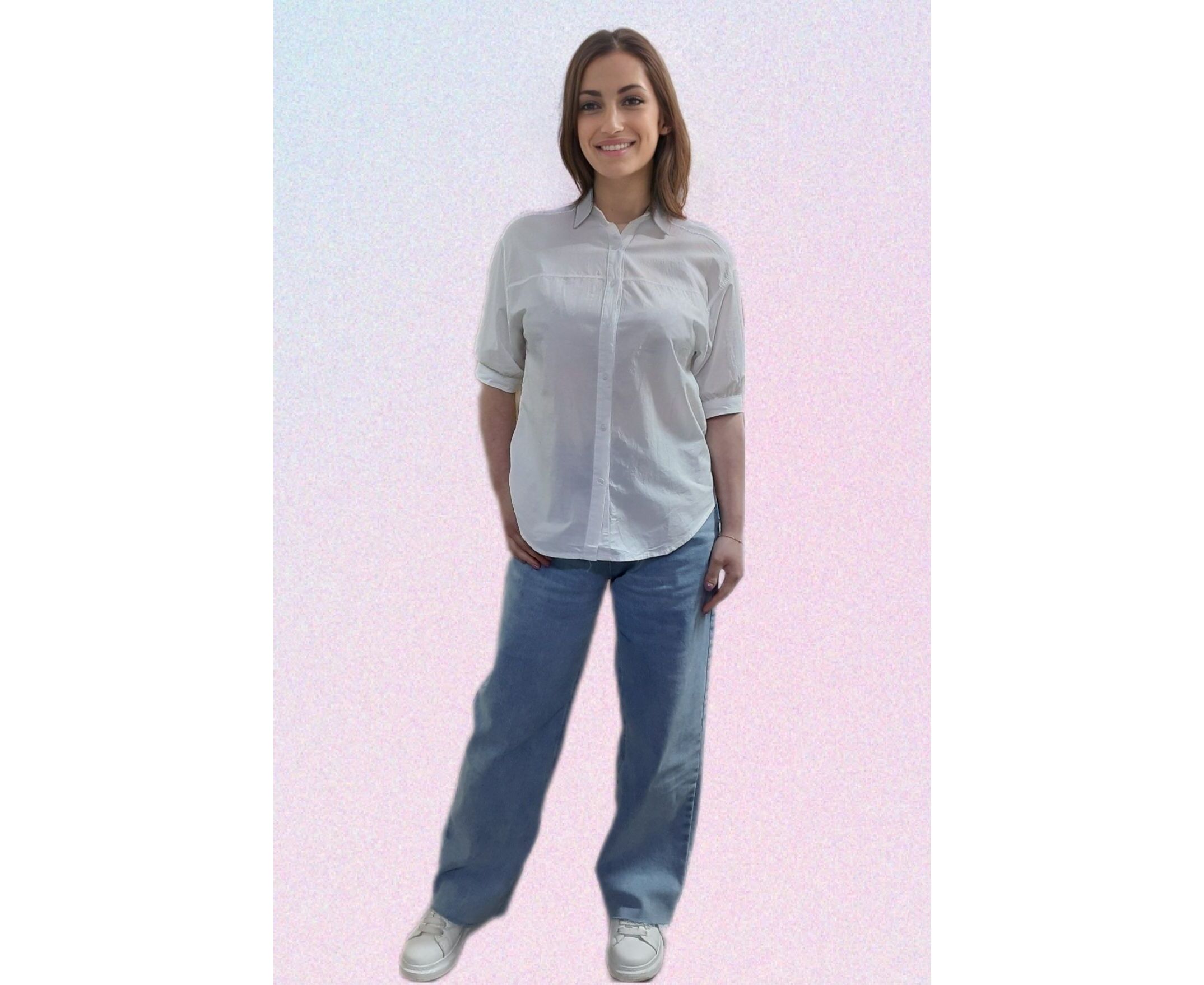Женская рубашка для повседневной носки с короткими рукавами. Застежка на пуговицах. Рубашечный воротник. Рубашку можно носить как блузку, а можно носить как второй слой поверх футболки или топа. Женская рубашка из качественного материала прямого кроя подарит Вам ощущение комфорта. Рубашка женская отлично пропускает воздух и впитывает влагу, что делает его идеальным выбором для любого гардероба. Свободная и блузка позволяет с легкостью скрыть недостатки фигуры и подчеркнуть её достоинства и поднимет твое настроение.