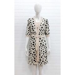 Состав: 100% хлопок. Размер с 44 по 54 (при заказе указывать размер в комментариях) Пеньюар состоит из халата в запах и сорочки. Халат запашной с поясом и рукавом 3/4. Сорочка на тонких бретельках, с принтом. Комплект идеально подойдёт для любого типа фигуры!