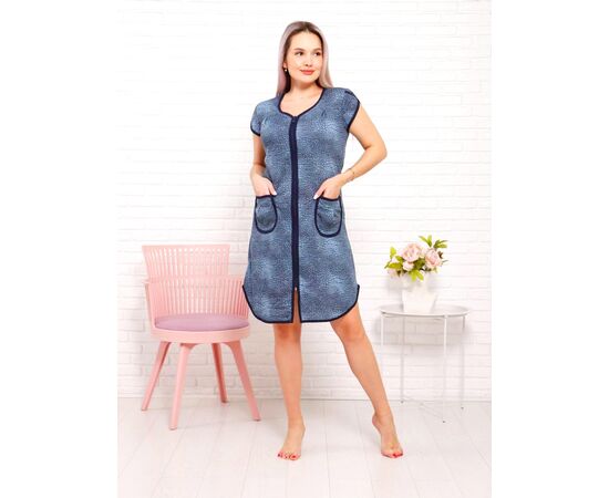 Халат из мягкой хлопковой ткани с очаровательным принтом. Халат на молнии является самой популярной моделью, обеспечивает удобство во время носки, не сковывает движений. Халат позволяет скрыть недостатки фигуры и ощущать легкость во время домашнего отдыха. Халат домашний дополнен накладными карманами и стильной V-образной горловиной, Длина платья универсальная,