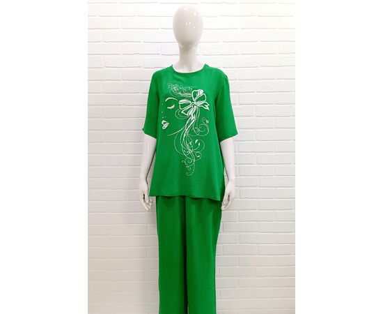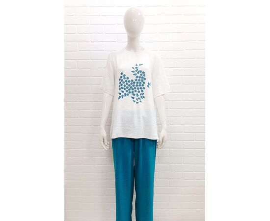Стильный женский костюм брючный (жатка): широкие брюки прямые с высокой посадкой с мягкой резинкой на поясе + свободная удлиненная футболка с коротким рукавом. Универсальный, легкий, удобный в ношении не стесняет движений. Кофта и штаны прямые свободного кроя создают очень уютное настроение. Скрывает недостатки и подчеркивает достоинства, идеально сядет на абсолютно разную фигуру и рост в любом возрасте, в том числе для беременных и полных женщин.