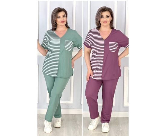 Летний костюм женский с брюками свободного кроя идеально подойдет как для дома, так для прогулок и повседневной носки. Дышащий материал, удобное лекало, в нем вам будет удобно и комфортно. Брюки свободные однотонные, на широком поясе с резинкой.