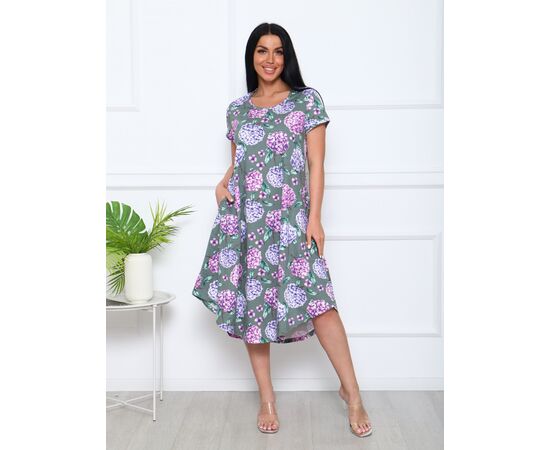 Платье выполнено из хлопковой трикотажной ткани-кулирка, которая обеспечивает комфорт и надежность. Имеет карманы на бедрах, что делает его удобным и практичным. Трапециевидный силуэт подойдет любой фигуре и скроет недостатки. Дышащее трикотажное полотно из 100% хлопка сделают прогулки комфортнее и удобнее. Можно сочетать с любой обувью. Длина женского платья ниже колена.