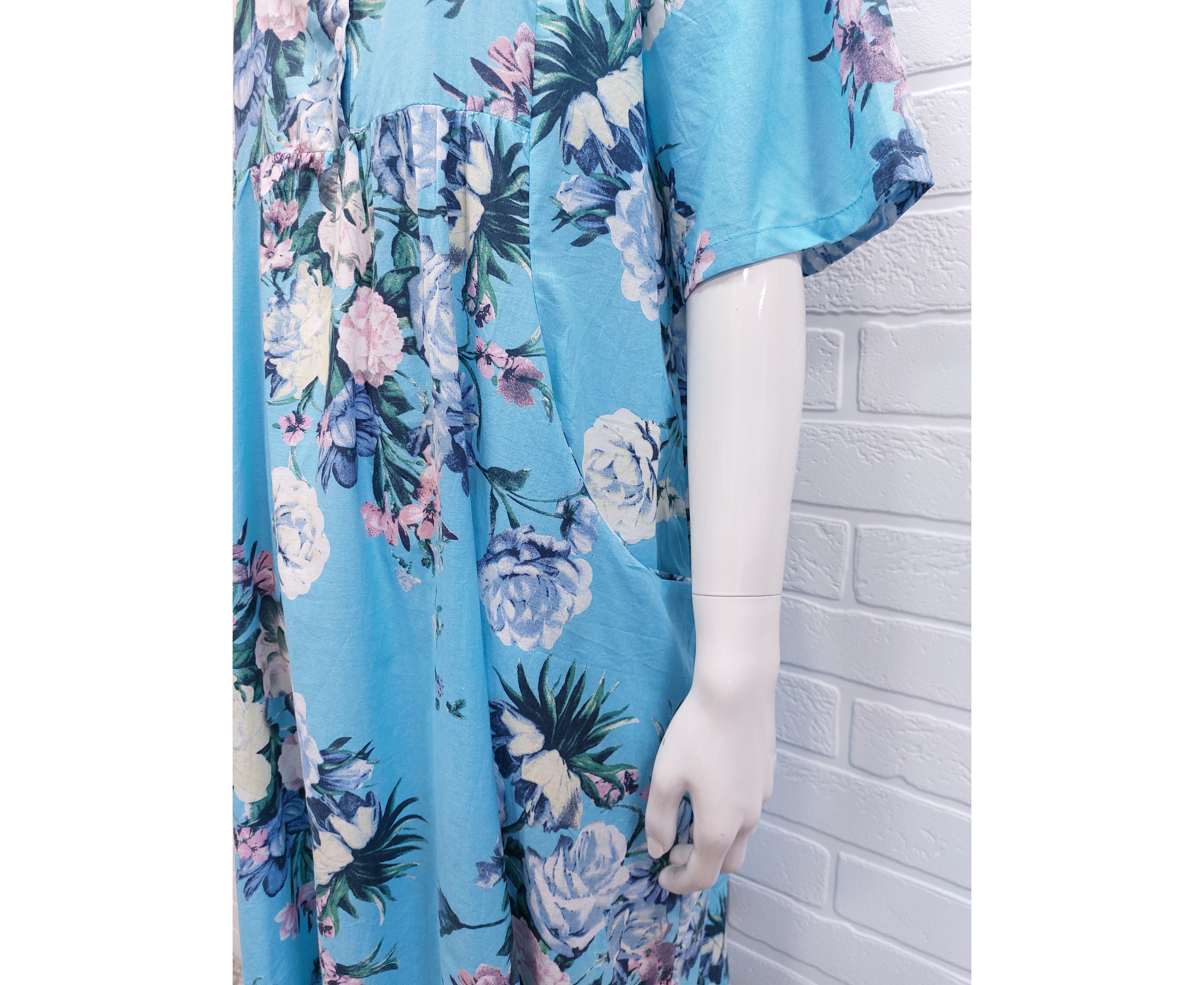 Длинное, легкое женское платье - это идеальный вариант для жаркой летней погоды. Платье сшито из поплина наивысшего качества, который не теряет яркости красок после многочисленных стирок, имеет шелковистую поверхность, тактильно очень приятен. Яркое платье свободного кроя идеально сядет на любой тип фигуры, подойдет высоким, среднего роста и невысоким девушкам и женщинам с пышными формами. Нарядное платье с ярким растительным принтом универсально, ведь оно прекрасно впишется в городской ритм и будет идеальным вариантом одежды для отдыха.