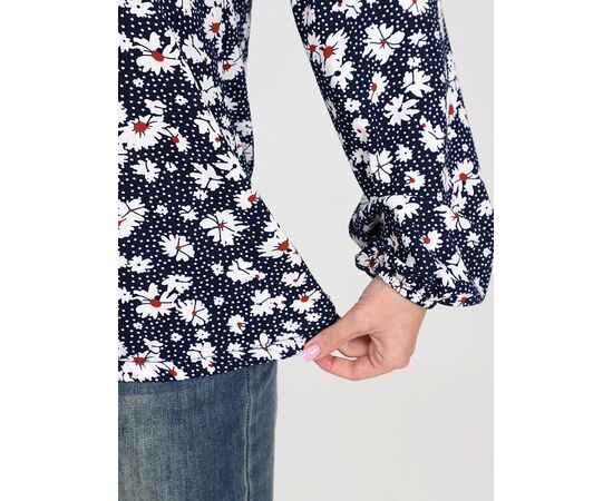 Женская нарядная блузка - идеальный выбор для повседневного и вечернего образа. Блузка с длинным рукавом "фонарик" сочетает элегантность и функциональность наряда. Летний блузон из легкой мягкой ткани масло, обеспечивает комфорт в любое время года. Прямой свободный крой скрывает недостатки фигуры, делая образ стильным и модным. Изделие украшено цветочным рисунком - тренд на многие годы, что добавляет дополнительно нарядный вид. Легкий материал делает её идеальной для фотосессий и праздников, а также официальных мероприятий. Наряд отлично выглядит как одиночный элемент или в комплекте с пиджаком.