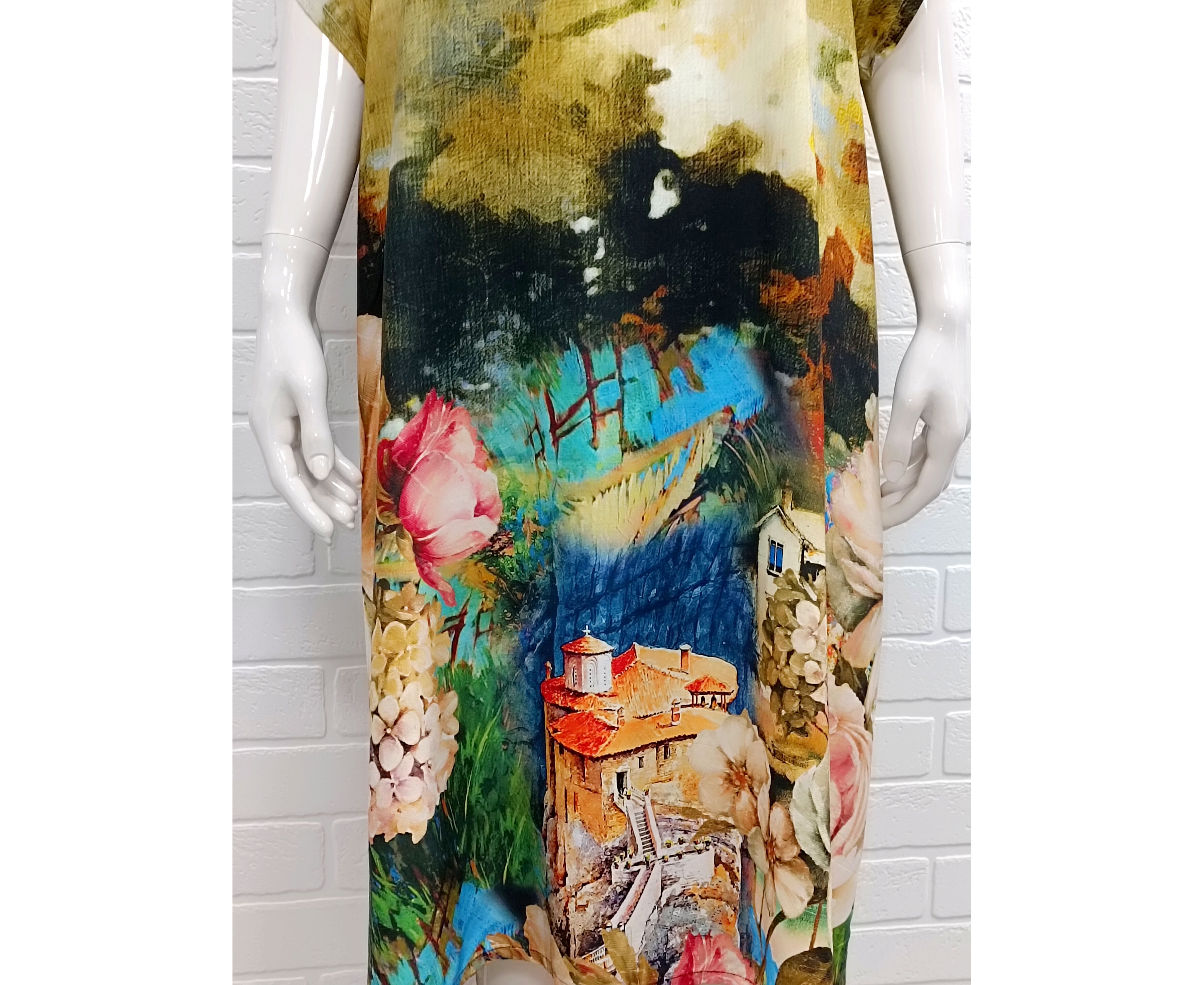 Удлиненная туника из вискозы с ярким, оригинальным принтом станет отличным вариантом одежды для каждой женщины. Подходит для отдыха на море, летних прогулок и как домашняя одежда. Туника свободная не сковывает движения,подойдет беременным и кормящим женщинам. При бережном уходе одежда для дома прослужит вам долгое время. Туника приятно прилегает к телу и позволяет коже дышать.