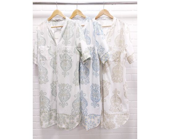 Туника короткая с V-образным вырезом, застегивается на пуговицы по всей длине. Платье стильное длинное подходит для использования как повседневное и домашнее. Назначение: для пляжа, в отпуск, на море, на лето, для дома. Туника-рубашка - лучший выбор для жаркого лета.